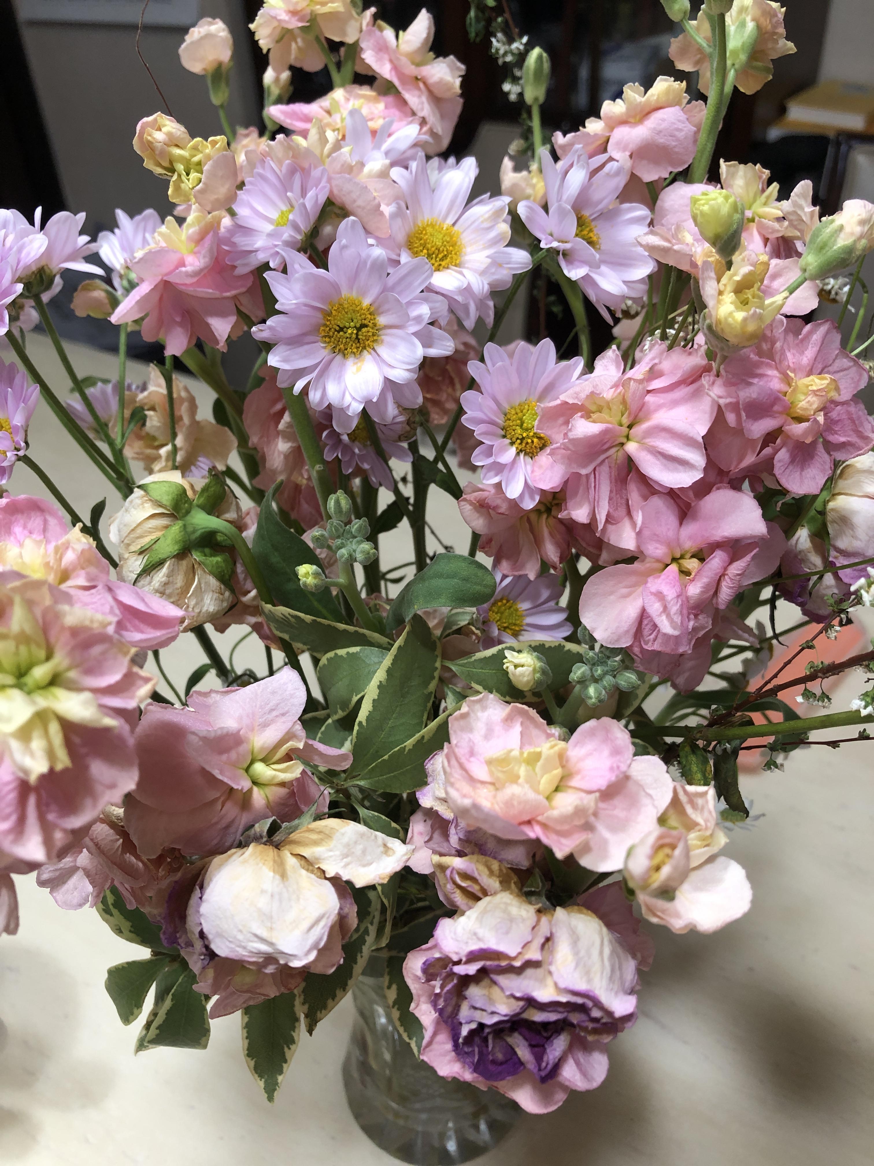 2주전에 받았던 꽃인데 이제 조금씩 시들어가고 있다.